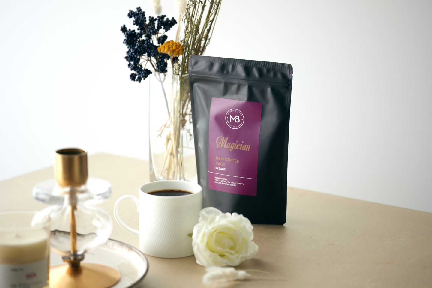 ポップアップ期間中は展示スペースにてご購入いただけますので、なかなか巡りあうことができなかった「苦み」と「酸味」のバランスに優れ、「チョコレートナッツ」のようなほんのり甘い香りただようMAVEN’S BREWのデカフェコーヒー『MAGICIAN(マジシャン)』をぜひこの機会にお試しください。